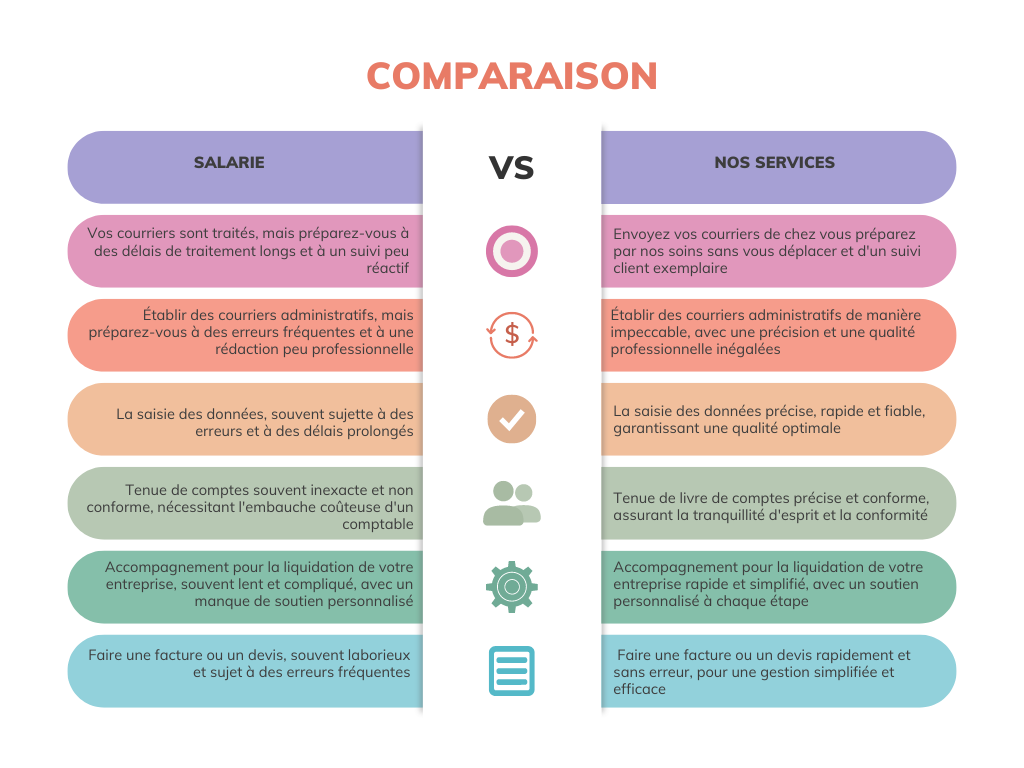 Nous pouvons vous débarrasser des tâches qui vous incombent, comme si vous aviez une secrétaire de direction très qualifiée à votre service.
